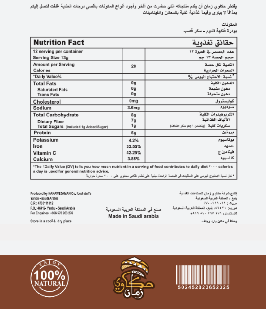 علبة قوالب دوم ميني (100 غ) مصنوعة من ثمرة الدوم الخام. عملية وخفيفة، تنفع كسناك صحي تاخذه معاك في يومك
